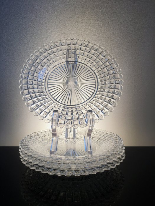 Schitterend servies van 8 gegoten kristallen borden geproduceerd in het begin van de 20e eeuw door de Cristalleries du Val Saint Lambert (België).