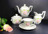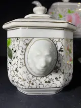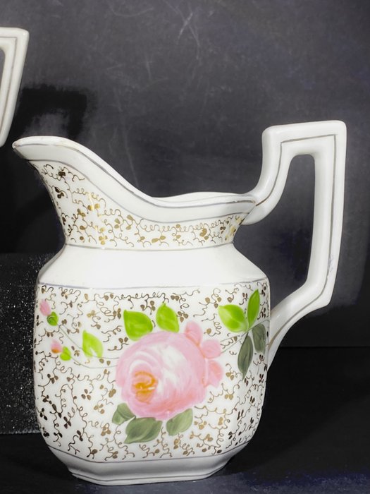 Old Egoist set - Middenstuk: een mooie kop met schotel, een theepot, een melkkan en een suikerpot met handvatten en in de vorm van een leeuwenkop in 19e-eeuws Parijs porselein, de details zijn prachtig uitgesneden. Heel romantisch en kan je huis decoreren in historische stijl Mooie staat voor zijn leeftijd - zichtbaar op mijn foto's. Zeldzaam ,