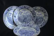 Zeldzame set van 6 Wedgwood Engelse porseleinen blauwe dessertborden, 1820-1830.