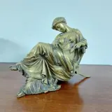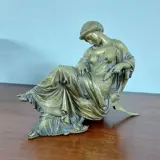 Verguld bronzen beeld van een klassiek zittende vrouw, gemaakt door Auguste Joseph Peiffer (1832-1886). Bekende Franse sculpturen.