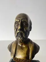 Beeld gemaakt van brons op een marmeren voetstuk.