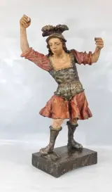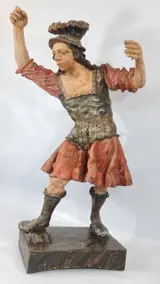 Een groot gebeeldhouwd en polychroom beeld Sint Michaël de Aartsengel.