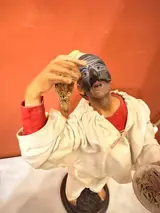 Terracotta sculptuur, periode 1960 met afbeelding van Pulcinella.