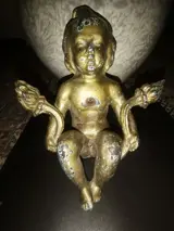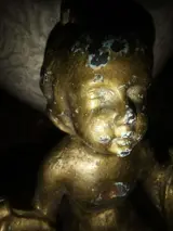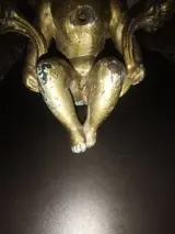 Schitterende 19e eeuwse gietijzeren engel beschilderd met vergulding, gewicht 2.190 kg, zeker opgehangen aan een poort of aan een buitenmuur (zie foto's)