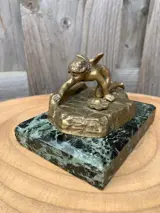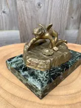 Bronzen Engel op een marmeren voet.