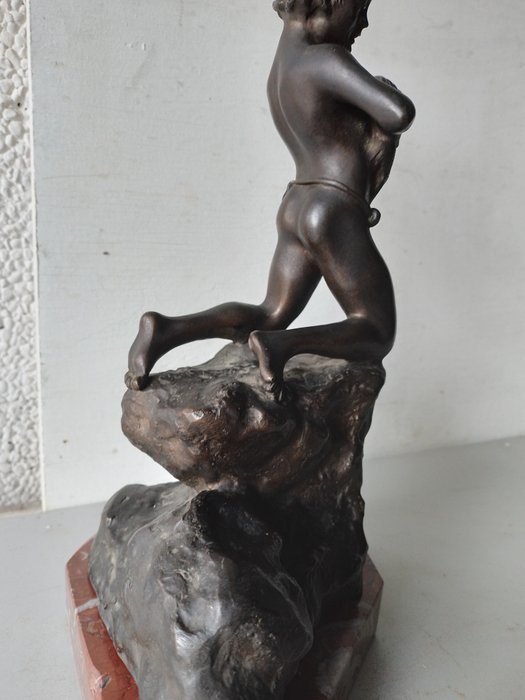 Verloren was bronzen beeld, voorstellende een jonge visser op een rots, bijzonder vakmanschap van de Napolitaanse school, gesigneerd onder V.Cinque. maat zoals op de foto, 33cm
