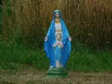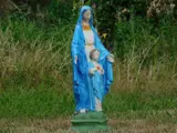 Leveromvang: 1 x kerkbeeld maria en jezus, vol steen en in kleur , gerestaureerd.