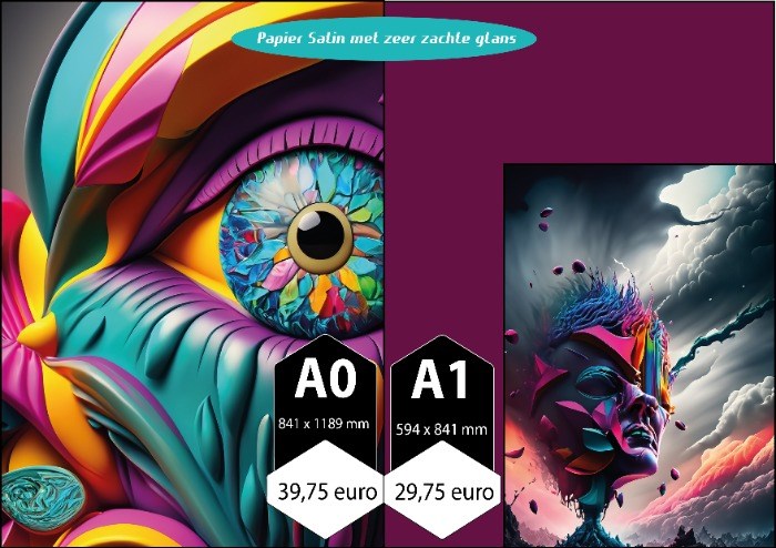 - Abstracte kunst: Voeg een vleugje energie en leven toe aan uw ruimte met onze collectie kleurrijke en abstracte kunstwerken. Formaat A1 prijs: 29,75 euro en formaat A0 prijs: 39,75.