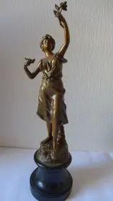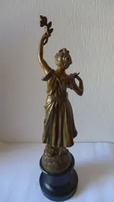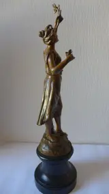 Het beeld is gemaakt van een gepatineerde metaallegering (vermoedelijk zamak/regule).