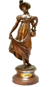 Zeer fraai beeld van de Franse kunstenaar L. Raphael (tweede helft 19e eeuw). Gesigneerd op de basis en getiteld "Merveilleuse" (wonderbaarlijk). Gemaakt door spelter. Periode eind 19e eeuw.
