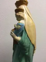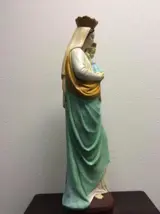 De mooie vrouw met een kind kan worden opgezet als Maria-figuur of als tuinbeeld. Met ongewoon rustig gebaar en grote vriendelijkheid uitstralen, ze kunnen ook in een kleine kapel of als een fantastische blikvanger in het park of de tuin geplaatst worden. Op moment u dit vol gekleurde beeld buiten plaatst is het beter om het beeld eerst met blanke lak te behandelen, kunnen wij ook voor u doen.