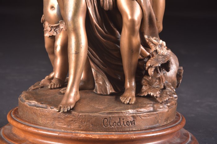 Het beeld draagt de signatuur Clodion en is vervaardigd in de 2e helft van de 19e eeuw. Het betreft een uitvoering van mooie kwaliteit, dit is bijvoorbeeld te zien aan de fraaie detaillering van gezichten, kleding en handen.