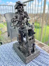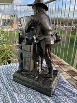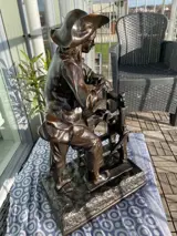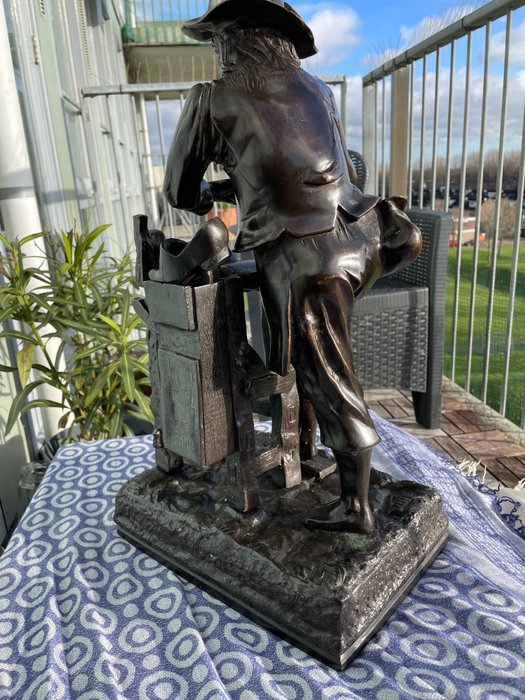 Een Franse Klompenmaker met losse klomp, met draaisteen. Gegoten in Antiek brons, naar voorbeeld van Paul Dubois.