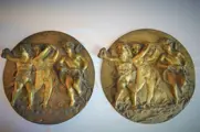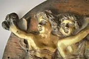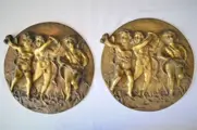 Prachtig paar wandreliëfplaten, in gepatineerd brons met een zeer mooie patina, versterkt door 3 Putti.