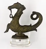 In de vorm van een hippocampus met vergelijkbare kenmerken gemonteerd op een ovale voet in tribunes van plexiglas