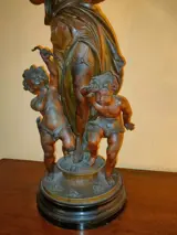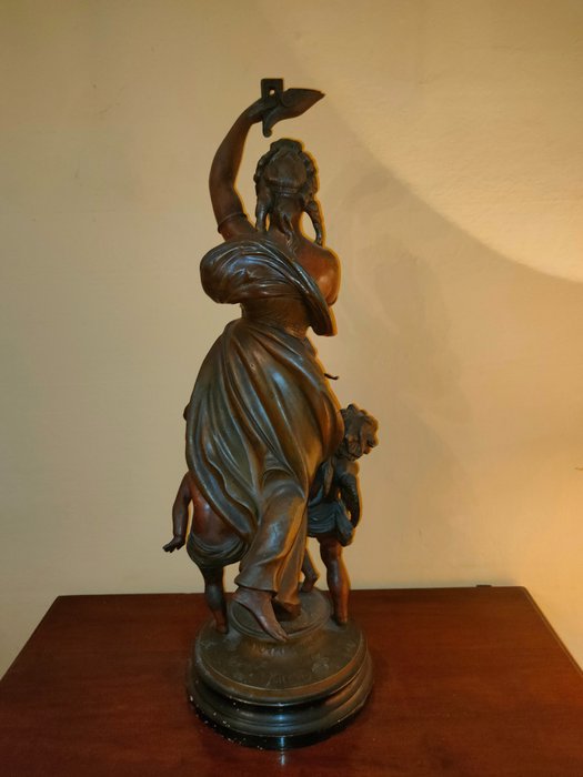 Philippe Poitevin (1831-1907) - Beeld, Godin met twee putti op houten sokkel - 67 cm - Hout, Zinklegering - Eind 19e eeuw