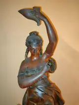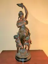 Prachtig en groot spelterbeeld op houten voet van de beroemde Franse kunstenaar Pillippe Poitevin.