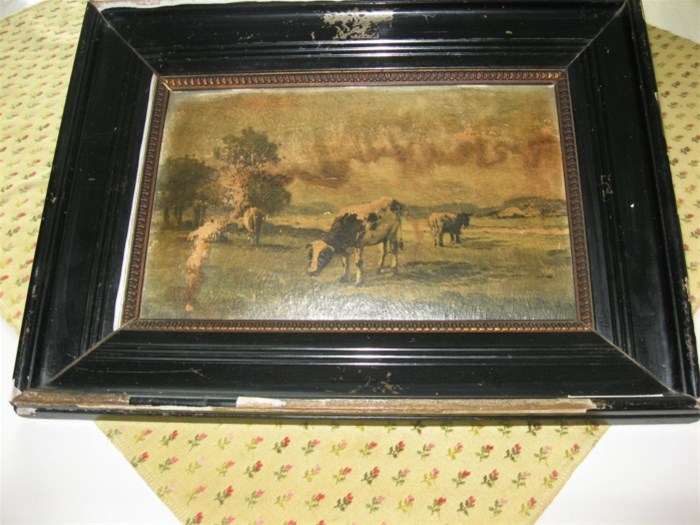Een oud schilderij grazende Koeien