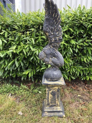 Deze engel met de vleugels gestrekt omhoog is een prachtig mooi beeld op bijpassende sokkel, zie de foto's die spreken voor zich. Dit is een geweldig mooi afgewerkt beeld en sokkel met ruw zandsteen opleg werkelijk top om te zien.