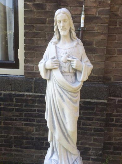 Het heilig hart beeld massief en zwaar dus geschikt om in weer en wind te plaatsen. Het weer zal het beeld van kleur doen veranderen waardoor het een prachtig authentiek karakter verkrijgt. Beeld is prachtig in zijn vorm en impressie en kan natuurlijk ook zeer goed binnen opgesteld staan.
