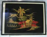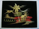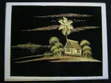 Twee Reliefschilderijen gemaakt van riet, geplakt op zwart doek.