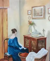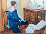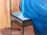 Prachtig schilderij van de schilder A.Della Valle olieverf op doek 50 x 40 voorstellende een dame zittend bij (gedachten) scène van een interieur van een elegant huis, (tegenlicht) Ik nodig je uit om de kleding van de personages en de kleurcontrasten prachtig te observeren ingevoegd tussen Zij. De uitstekende picturale hand van de meester wordt opgemerkt, waardoor het schilderij harmonieus en elegant wordt.Een werk van uitstekende picturale hand, voeg ik toe, een werkelijk opmerkelijk werk. Authenticatie door de schilder op de achterkant Afkomstig uit een privécollectie en aangetekende verzending