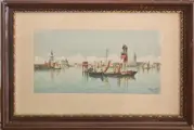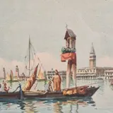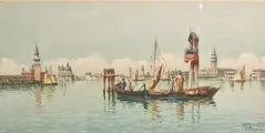 Aquarel op papier met voorstelling van Venetië, gesigneerd A.Minotto Venezia rechtsonder.