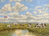 De Nederlandse kunstschilder Albert Temming (1942) of soms ook Albertus J. Temming studeerde aan Kunstacademie Artibus in Utrecht en is bekend vanwege zijn realistische schilderijen met landschappen met koeien en veel wintergezichten. Daarnaast schildert Albert Temming ook stadsgezichten, portretten en stillevens en maakt hij etsen en tekeningen. De klassieke werken van Albert Temming zijn internationaal geliefd. Dit mooie schilderij heeft een eiken lijst met een actueelHollands thema.. formaat 41 x 51 cm.. gesigneerd.