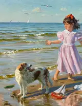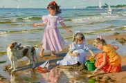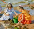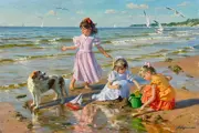-Filettes au Bord de Mer - De vlucht van de meeuwen - olieverf op doek, gesigneerd rechtsonder. en getiteld in het Russisch op de achterkant.
