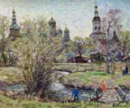 Werk verkocht met zijn originele Russische lijst: 53 x 61 cm.