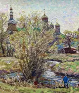"Printemps" olieverf op paneel, gesigneerd rechtsonder, medeondertekend en getiteld op de achterkant.