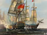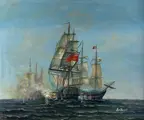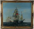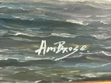 Ik bied ter veiling een charmant 20e-eeuws olieverf op doek van een zeeslag, door kunstenaar Ambrose. Gesigneerd rechtsonder.
