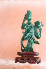 zeer mooie Guanyin gesneden in malachiet