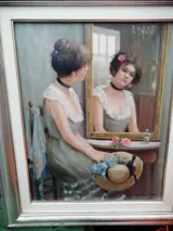 Prachtwerk van top schilderAnnemarievan wolde,ze is geborenin Amsterdamin 1921..tot 2018in Laren.werk is in goede staaten is over de hele wereld bekend ,werk komt uiteigen collectie,,zal metzorgen netheid verstuurden verpakt worden,,echteen topperaan de muuren ook een mooie maatcadoek,,doekmaaris40x 50cmex lijstincl56 x 67 cm ..ziedeze taferelen op google,dezemooiewerken halen hoge prijzenin het buiten land,maarin ons eigen landooknatuurlijk .