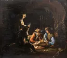 Het schilderij wordt hier in feite weergegeven met een achtergrond waaruit de figuren tevoorschijn komen, gemaakt met deugdzame en levendige penseelstreken, vol stuwkracht en vol met een rigoureus licht dat de figuren doordringt. De picturale kenmerken van zijn werken bestaan in feite uit een diffuse helderheid en een clair-obscurcontrast in de figuur-grondrelatie, zoals in het geval van ons canvas. Hoewel aangetast door kleine restauraties en oxidatie, toont het doek nog steeds zijn expressieve kwaliteit, met een Caravaggesque en naturalistisch karakter, maar met bijzondere aandacht voor de nieuwe achttiende-eeuwse smaak, zoals in de werken van Cifrondi. Actief tussen Bergamo en Brescia tussen de zeventiende en achttiende eeuw, wordt Antonio Cifrondi (Clusone 1656 - Brescia 1730), een tijdgenoot van Fra 'Galgario (1655-1747) en een beetje ouder dan Giacomo Ceruti bekend als Pitocchetto (1689-1767), herinnerd door de bronnen als een productief kunstenaar en met een uitzonderlijke snelheid van uitvoering. In zijn lange carrière heeft hij zelfs een indrukwekkende hoeveelheid werken geproduceerd (meer dan vierhonderd waaronder altaarstukken, frescocycli, portretten, scènes uit het dagelijks leven) die grotendeels nog bewaard zijn gebleven in de kerken en paleizen van de regio Bergamo en Brescia. Eigenaar van een goed georganiseerde winkel, gedurende enkele decennia was hij een van de heersers van de lokale kunstmarkt. Volgens Francesco Maria Tassi, zijn eerste biograaf (1793), ging Cifrondi in de leer bij een onbekende lokale schilder, een zekere Del Negro, voordat hij naar Bologna ging om zich te perfectioneren in de werkplaats van de beroemde Marcantonio Franceschini. In 1679, op drieëntwintigjarige leeftijd, maakte Antonio een gedocumenteerde reis naar Rome voor de canonieke "trainingsreis". Ook in de achttiende-eeuwse bronnen wordt verwezen naar (ongedocumenteerde) verblijven in Turijn en Frankrijk. In 1686-1687 was hij zeker werkzaam in Clusone. In de jaren tussen de zeventiende en achttiende eeuw was hij onder meer betrokken in de parochiekerk van Cenate San Leone (De ontmoeting van Leo de Grote en Attila, 1693), in Cerete Basso (schilderijen van de apsis in de parochiekerk 1695 -96) en in Sant 'Alessandro della Croce in Bergamo, waar hij het grote doek schilderde met het martelaarschap van de titulaire heilige (1698). Over het algemeen zijn zijn werken, vooral als ze gericht zijn aan een perifere klant of met minder beschikbaarheid, summier en repetitief; vice versa bij de meest prestigieuze gelegenheden zijn ze in staat om goede verhalende vaardigheden, compositorische intelligentie en een tot virtuositeit neigende picturale techniek tot uitdrukking te brengen. De stijl van de schilder wordt namelijk gekenmerkt door dartelende en cursieve penseelstreken, door mengsels van vloeibaar beeldmateriaal en door heldere en heldere kleuren met een al achttiende-eeuwse smaak. [...]