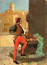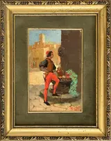 Antonio Salvetti (1854-1931), "Figuur in renaissancekostuum", olieverf op paneel, 1918.