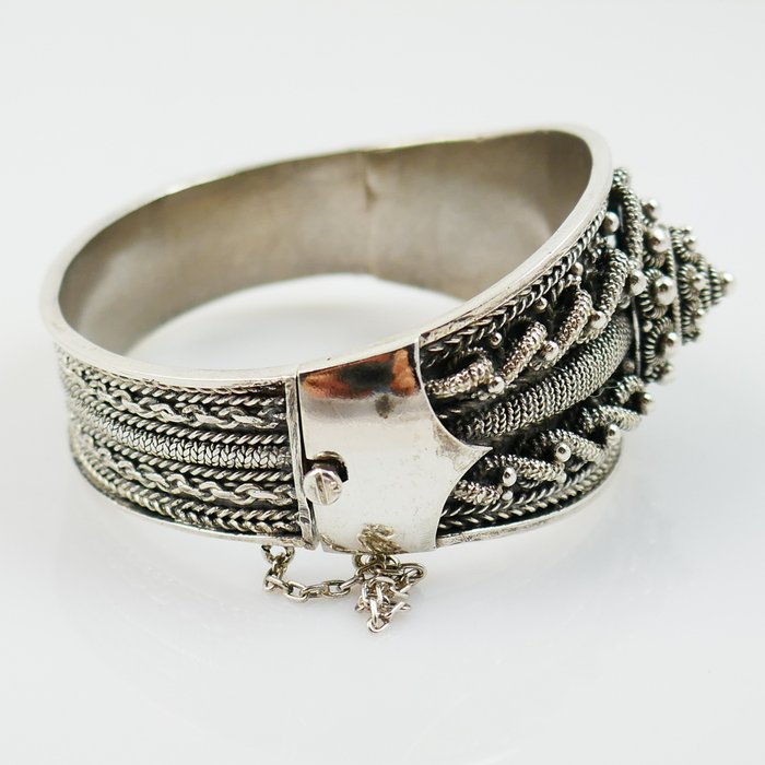Afmeting: draagbare binnenmaat is ca 17 cm. Aan de voorzijde is de armband 3cm breed.
