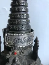 Fijn werk filigraan zilveren armband uit Nepal inscriptie in het Sanskriet, het krachtigste beschermingsmantra-symbool van het oosterse