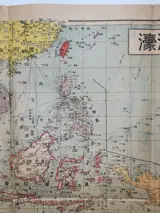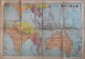 De kaart beslaat Australië, Zuid-India, westelijk vasteland, Zuidoost-Azië, Indonesië, de Filippijnen en Nieuw-Guinea tijdens de oorlog in de Stille Oceaan. De insteekkaart linksonder met de titel "India en Birma" toont de regio die India, Afghanistan, het westelijk deel van China, Birma en Thailand omvat. Agrarische en minerale hulpbronnen, evenals wegen, spoorwegen, zeeroutes, landsgrenzen worden getoond.