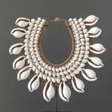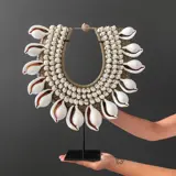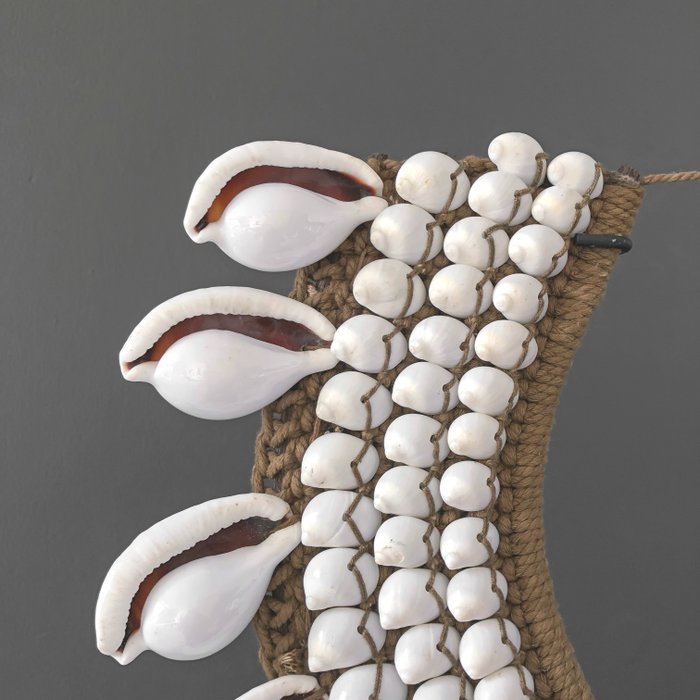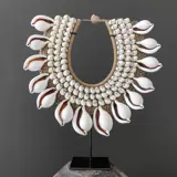 Collier van schelpen op standaard uit Papoea-Nieuw-Guinea.