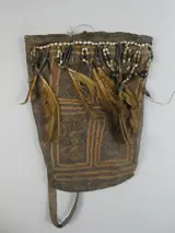 -Zak versierd met coix zaden (Job's tranen), twee veren, twee kasuarisschachten.