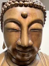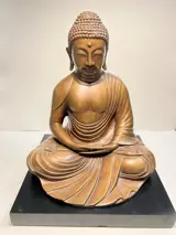 Zeer fraai bewerkte zittende / biddende bronzen boeddha (hol van binnen) op zwarte voet