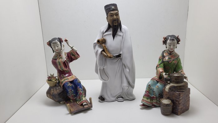 Drie prachtige beelden gemaakt van porselein, alle drie zijn Gemerkt.