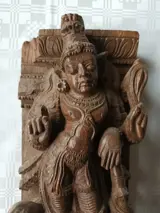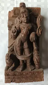Zuid-India - Een fraai houten beeld van een hindoegod (zeer waarschijnlijk DURGA).