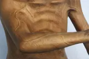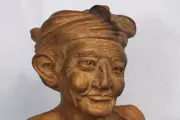een Balische man, zeer gedetailleerd, gesneden uit hout.