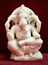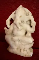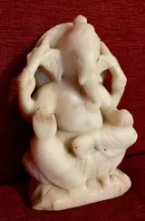 Schitterende 19e eeuwse marmeren Ganesh met 4 armen zittend op een lotus met zijn rat aan zijn voeten.