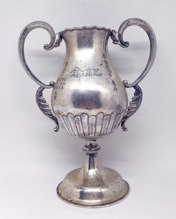 Fantastische Chinese herdenkingsbeker, een zeldzaam object vanwege de toewijding gegraveerd op de achterkant, geschonken door de bank Jardine Matheson (南京怡和洋行)