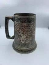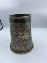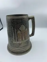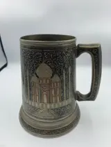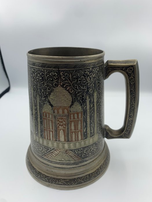 Zilveren bierpot uit India. Gegraveerd met de kaart van Azië en Taj Mahal. Met bodem in glas.