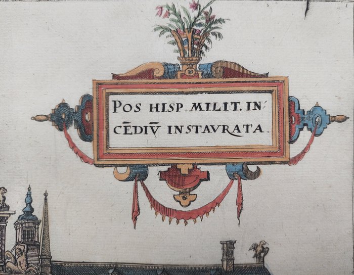 Conditie: goed/zeer goed. Met vouw als uitgegeven. Voldoende marges. Kleine split marge onderaan vastgezet. Verso: blank. Mooi handgekleurd.