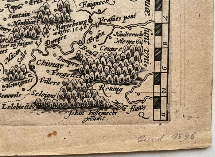 Vroege en mooie kaart van Henegouwen/Hainault door Matthias Quad, uitgegeven door Johan Bussemacher, Keulen, 1596. Naar Jacobo Montano.